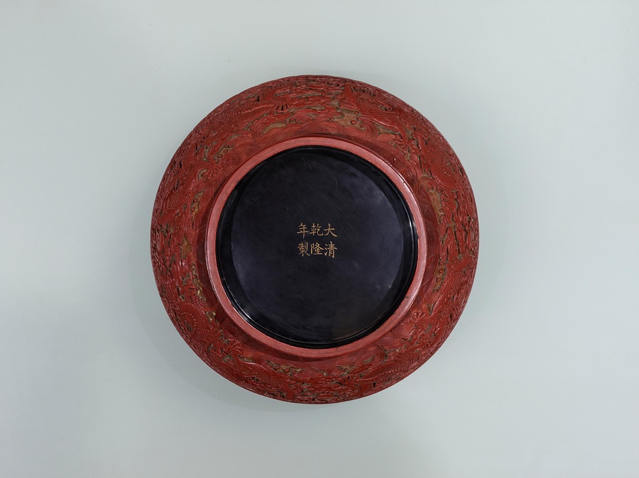 双龍彫彩漆盆