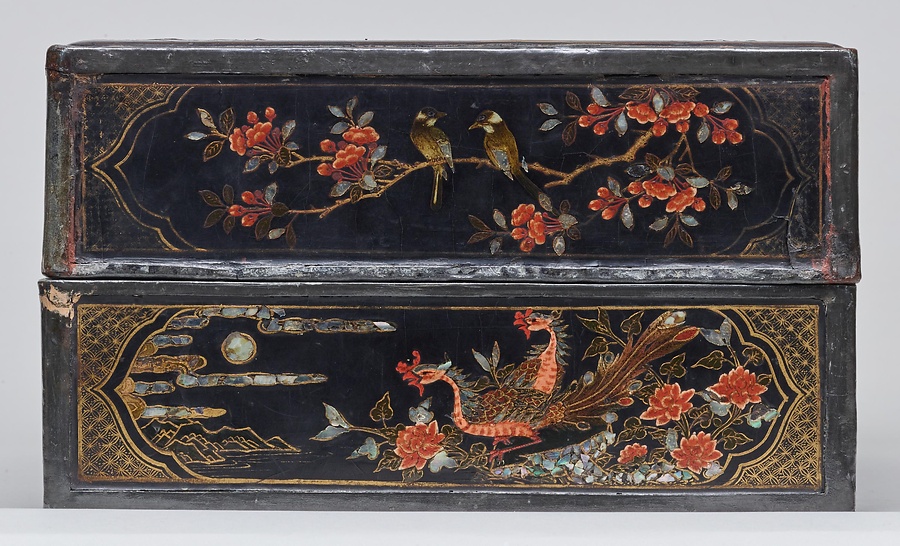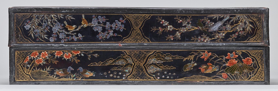 楼閣人物漆絵螺鈿長方形箱