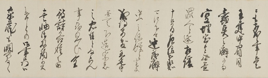 江戸の芝高輪に住む豪商の豊田九右衛門@とよだきゅうえもん@が、市河米庵@いちかわべいあん@に所蔵品の鑑定を依頼しました。そのとき、米庵がぞっこん惚れ込んで、度重なる懇願の末に入手した因縁の一幅です。米庵は謝礼として酒15樽を車に積み、さらにこの幅の精巧な摸本を作って豊田家に納めました。