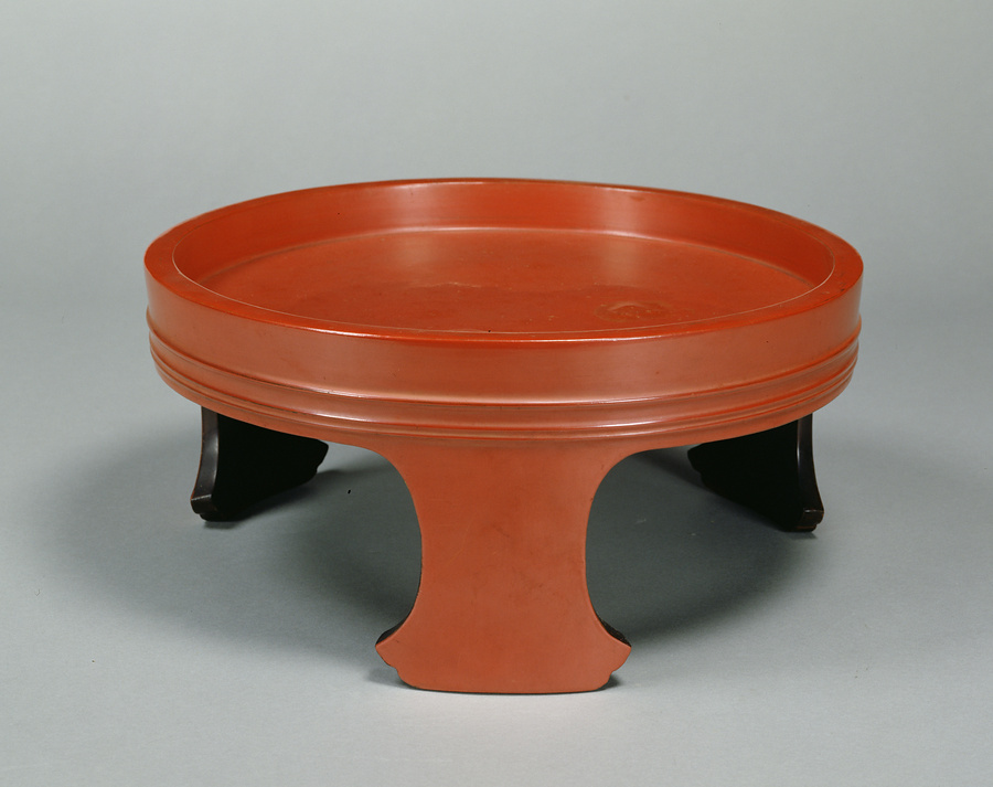 表は朱漆塗り、裏は黒漆塗りである。この上に急須や茶碗を載せ、お客様の接待用として使われた。