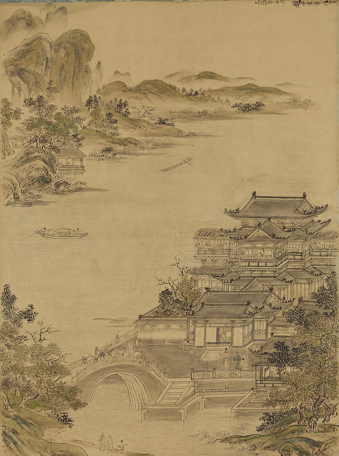 楼閣山水図(模本)