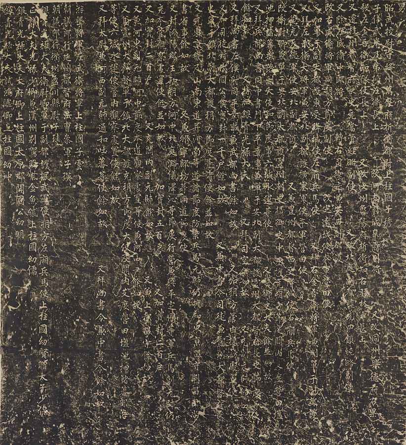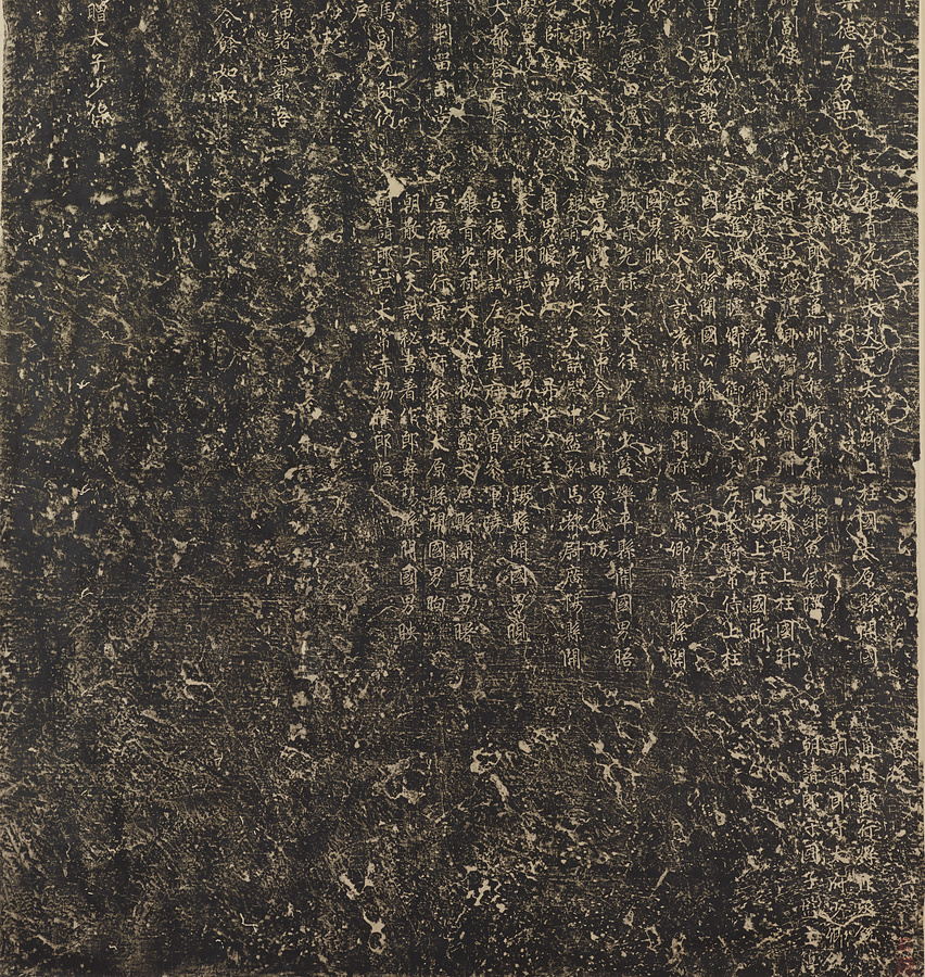 安史の乱の平定に大きな功績のあった郭子儀(かくしぎ)が、父の敬之(けいし)の廟に建てた碑です。この碑の題額(だいがく)は代宗皇帝が賜ったもので、碑文は郭氏の家系、郭敬之の事跡や郭子儀の業績を述べています。碑陰(ひいん)には、一族の官職が記されています。顔真卿が撰文し、書写しました。56歳の作。