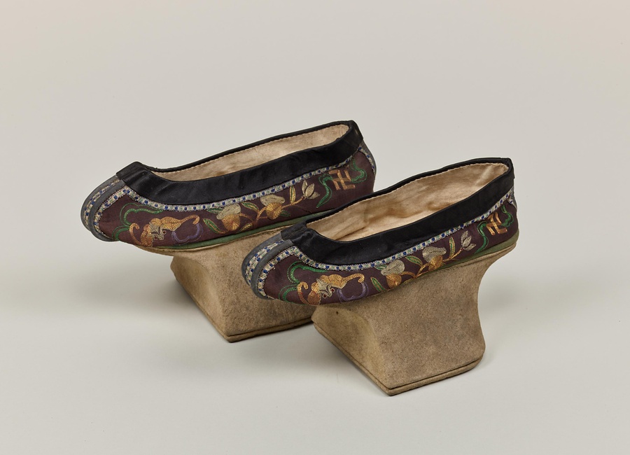 花盆底鞋 黒地花蝙蝠文様