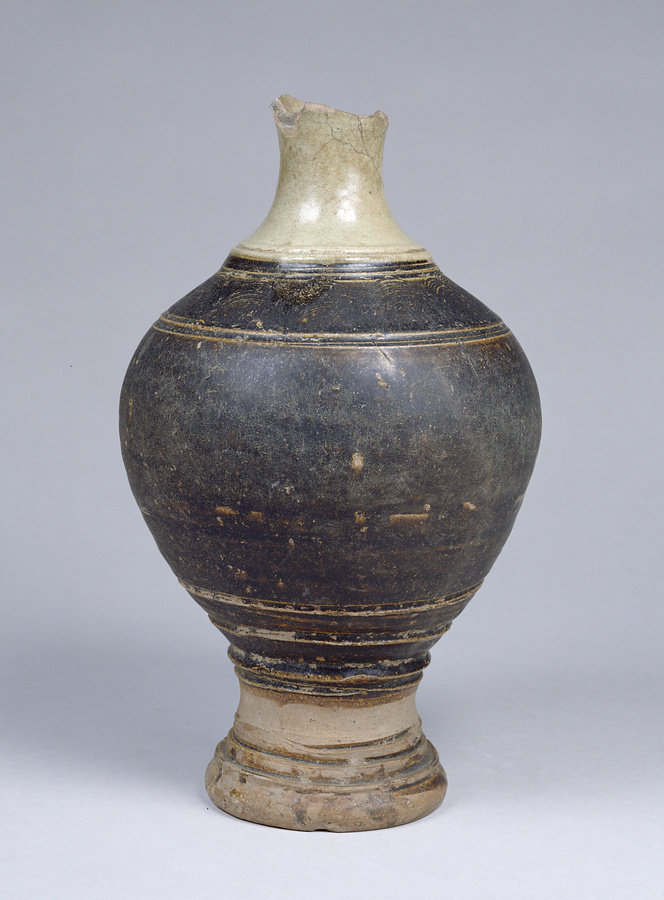 黒褐釉劃花文瓶