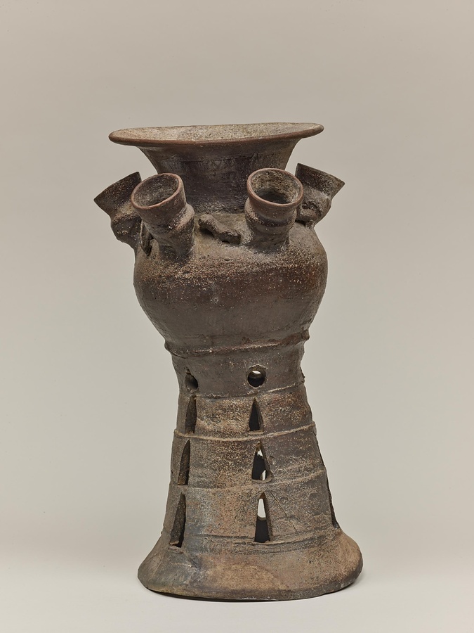 子持装飾付脚付壺