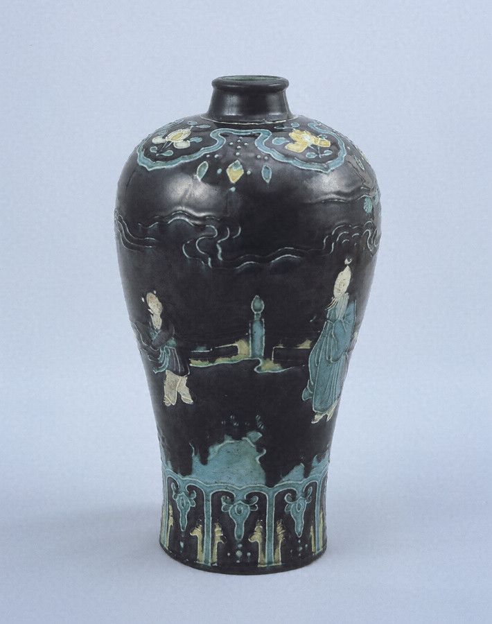 法花樹下人物文瓶