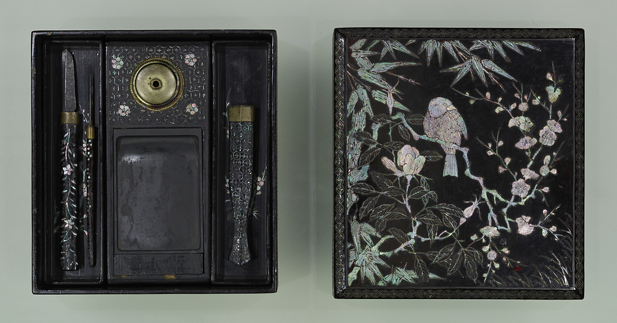 花鳥螺鈿文台・硯箱および唐草螺鈿箱