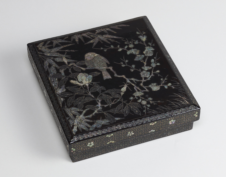 花鳥螺鈿文台・硯箱および唐草螺鈿箱をもっと見る
