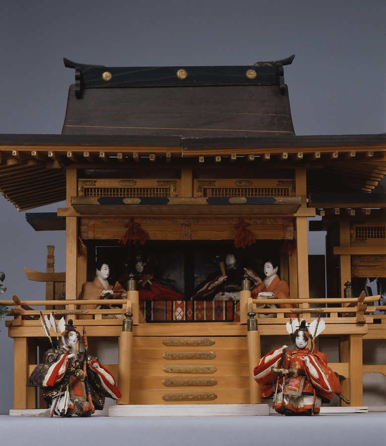 江戸時代後期から昭和初期まで京都にあった並河(なみかわ)人形店の人形師・金(きん)毛亭(もうてい) 吉文字屋清右衛門(きちもじやきようえもん)が制作した御殿飾りである。紫宸殿(ししんでん)をモデルにした御殿飾りは明治期に京阪神で流行した雛人形のスタイルである。
