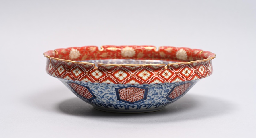 色絵散花文輪花鉢