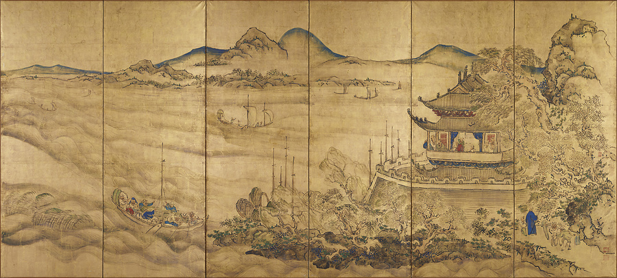 楼閣山水図屏風