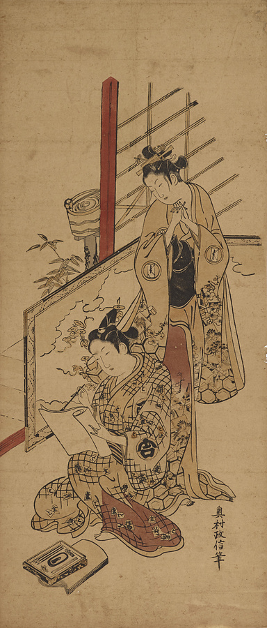版画遊色三福つい図〈奥村政信筆/筆彩竪大々判〉