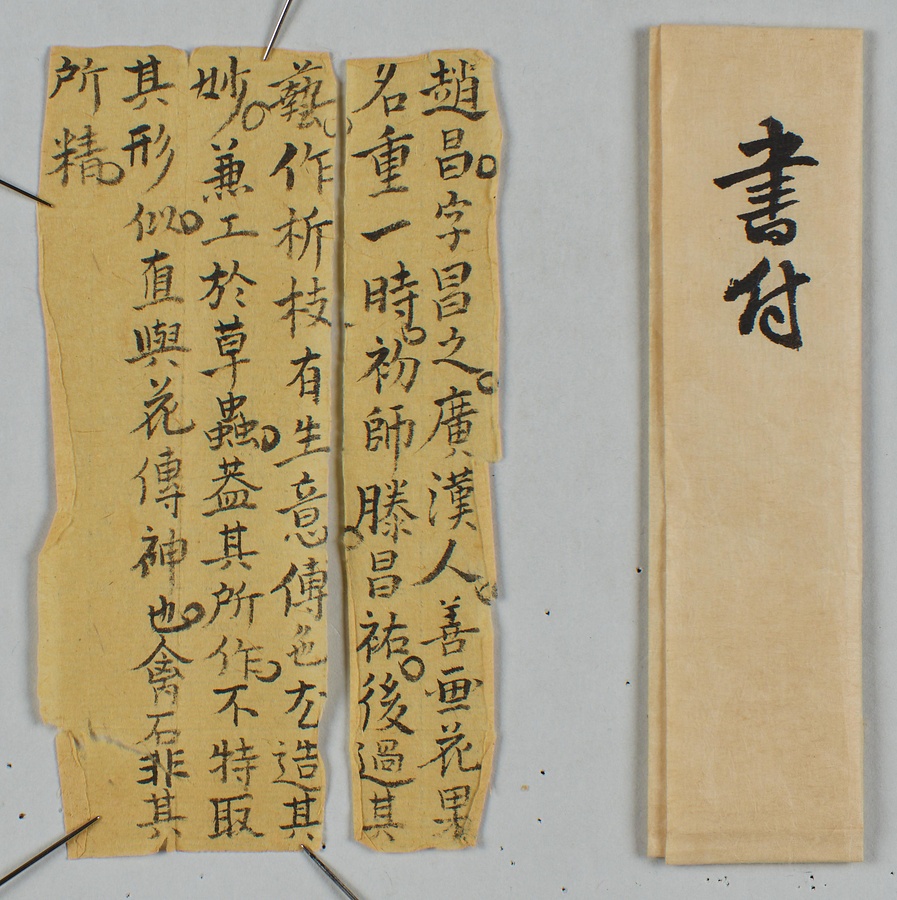中国絵画では、こうした草花と虫の組み合わせは人気の画題でした。この図には、瓜の葉の色のグラデーション、鶏頭(けいとう)の花びらの細かな点、虫の触覚や脚の線など、非常に写実的で繊細な描写が見られます。草虫図(そうちゅうず)としては現存する中で最も古く、南宋時代13世紀に描かれた名品と評価されています。画面の左上に押された朱印は、室町幕府第6代将軍、足利義教(あしかがよしのり)のものです。足利将軍家に伝わった由緒ある作品であり、「趙昌の曲がり竹」と呼ばれて大事に伝えられてきました。