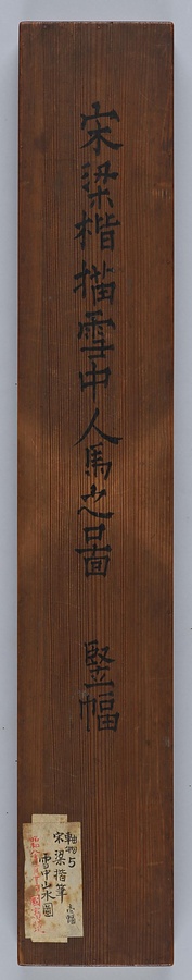 各画面には、梁楷の対照的な二つの描き方が見られます。修行のためやせ衰えても、眼光の鋭さを失わない釈迦の厳しい顔は、立体感が丁寧に整えられ、雪山を行く人や馬の帽子や馬具は金色で細かく装飾されています。一方で釈迦の背景の枯れ木は、遊びのある激しい筆線で構成されます。また雪景山水図で旅人の後ろにそびえる雪山には、ひっかくような粗い筆線が目立ちます。緻密さと荒々しさ、梁楷の二方向での表現が見事に結びつけられた傑作です。