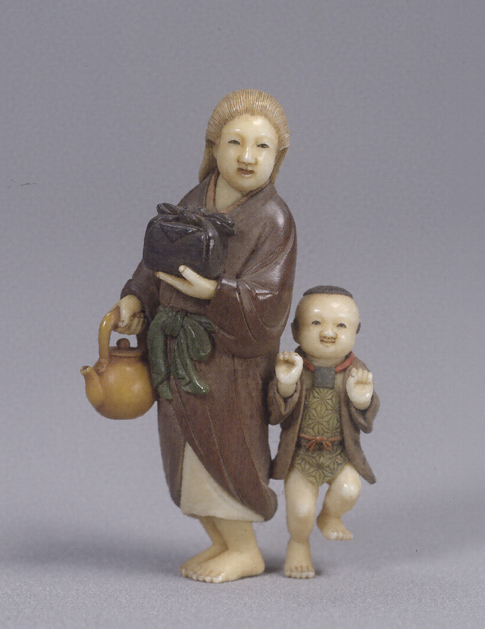農婦童牙彫根付