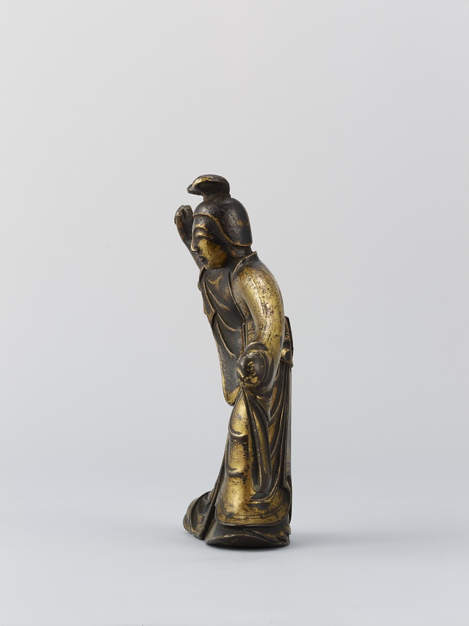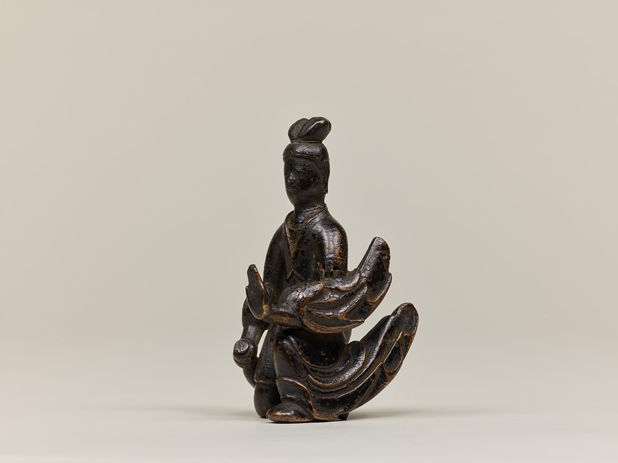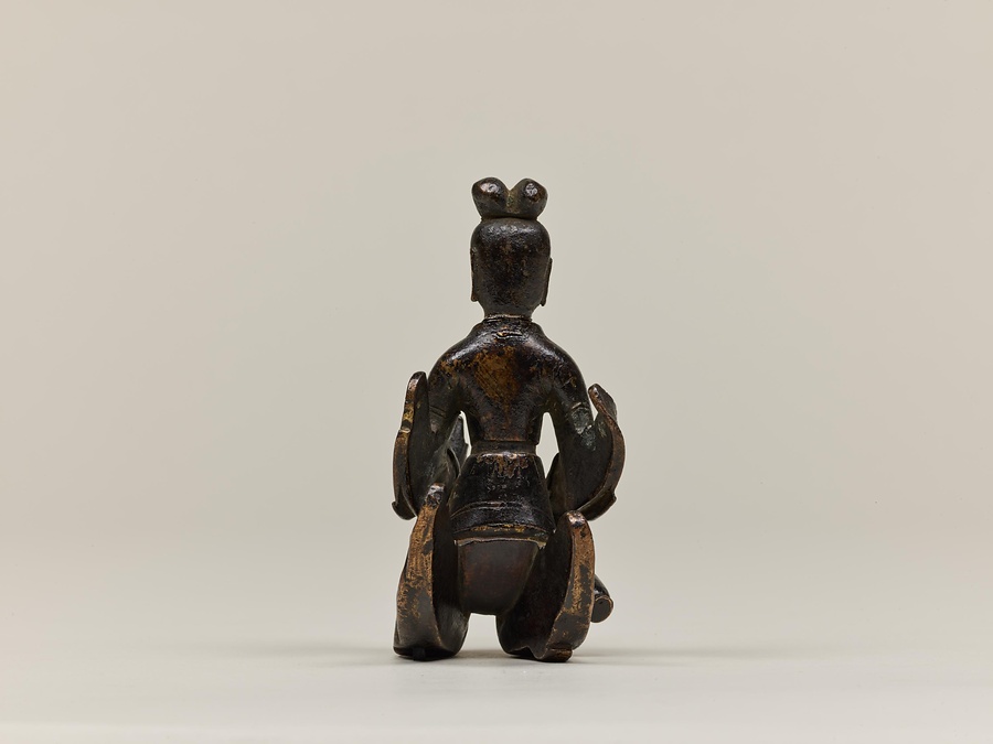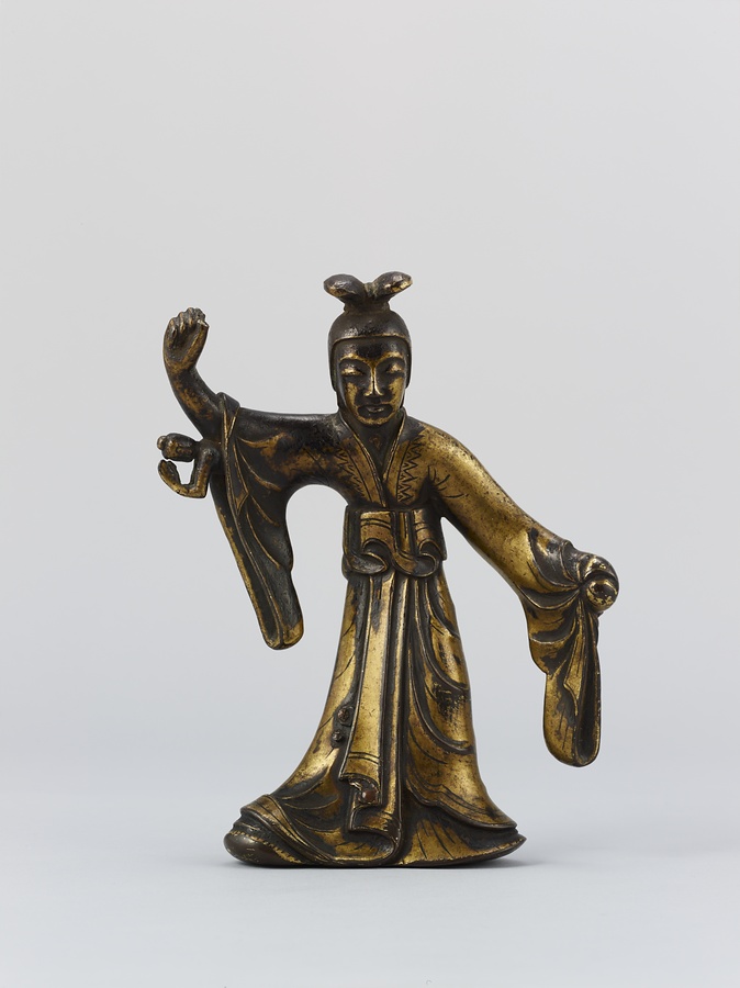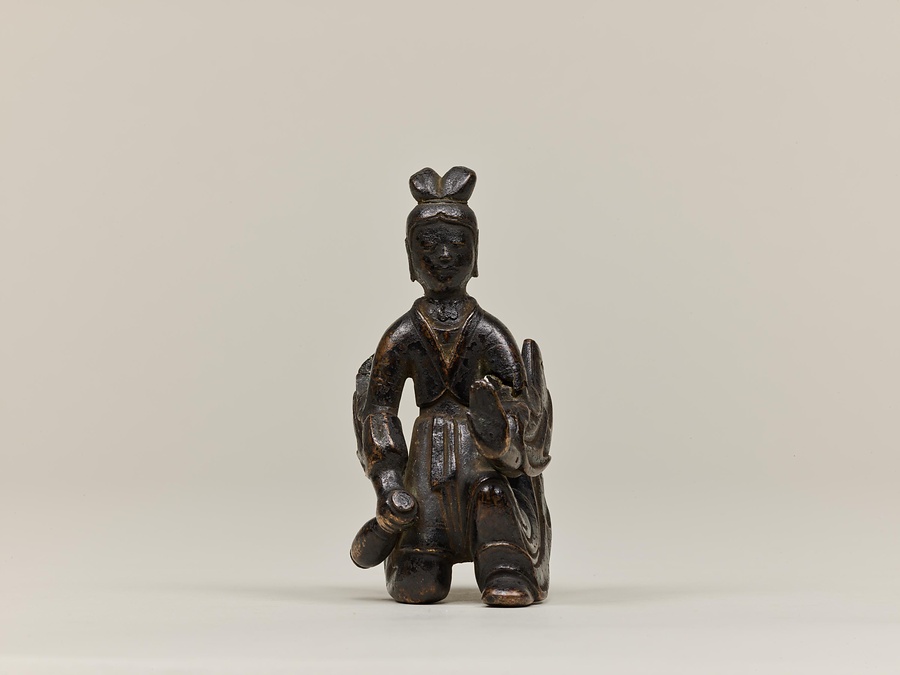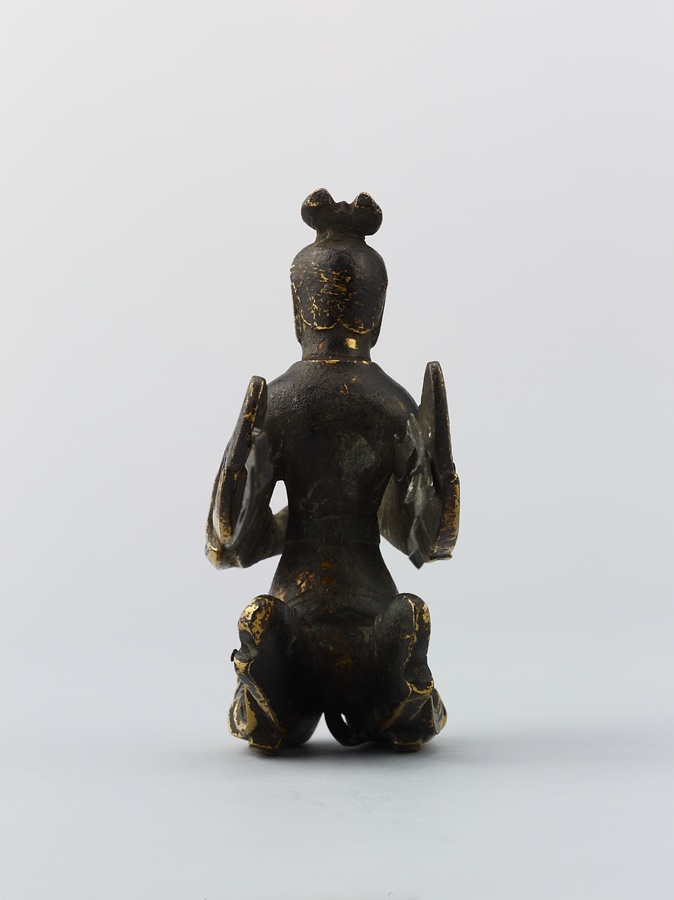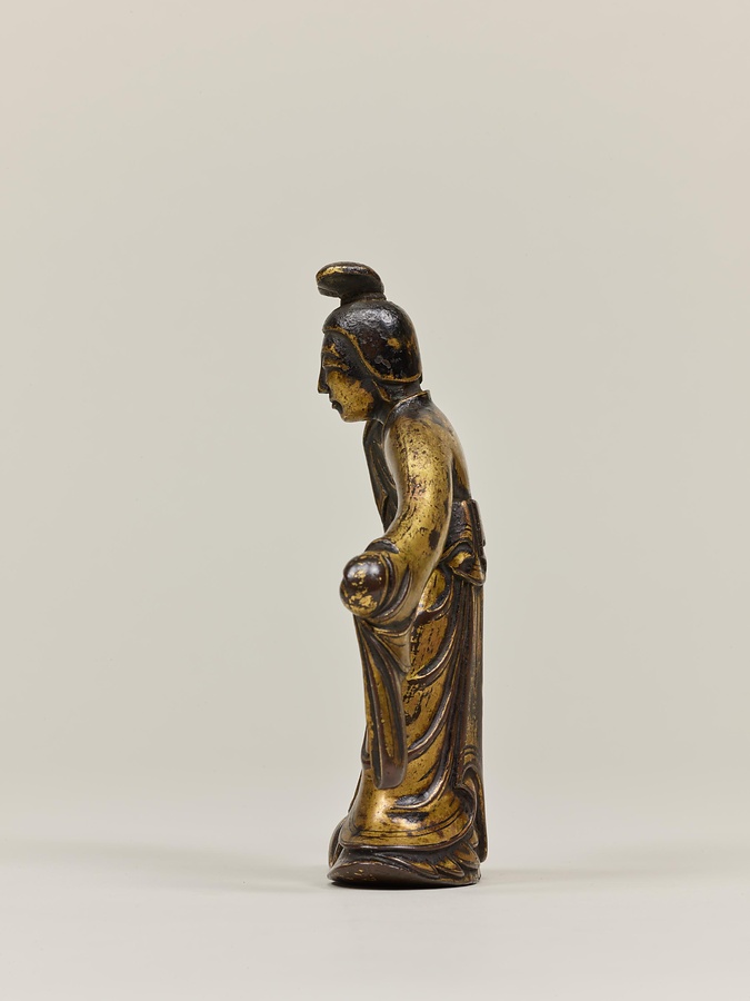 お釈迦様の母、摩耶夫人(まやぶにん)がお釈迦様を生むその瞬間を表した珍しい作品です。シャカ族の王妃であった摩耶夫人は、出産を前にルンビニー園という花園を訪れます。そこで花の咲いた無憂樹(むゆうじゅ)という木の枝に手をかけたとき、右脇からお釈迦さまが生まれました。お釈迦さまは生まれてすぐに7歩あるき、世界のすべての人々を救うために生まれてきたことを宣言します。その時、梵天(ぼんてん)や帝釈天(たいしゃくてん)といった神々は香りのよい水をお釈迦様に注ぎ、その身体を洗ったと伝えられています。