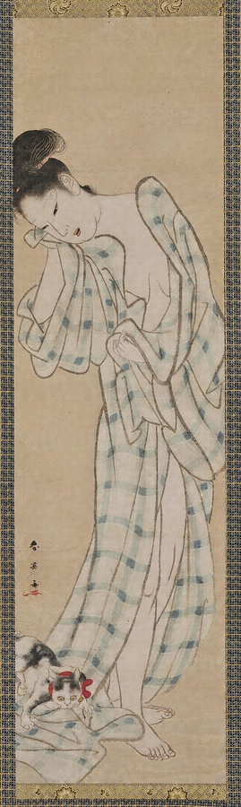 湯上り美人と猫図