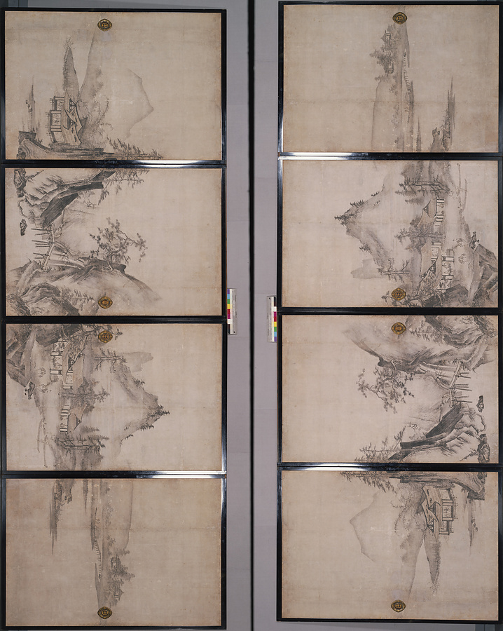 紙本墨画淡彩四季山水図〈伝雪舟筆/〉