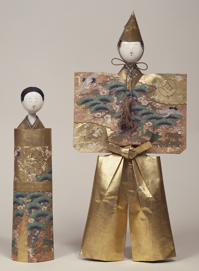 立雛は祓いに用いる形代の人形から発展したと考えられ、その歴史は坐雛よりも遡る。自立しないため、壁などにもたせかけて飾られた。次郎左衛門頭、享保頭など、江戸時代を通じて、当時流行の頭をつけて製作された。