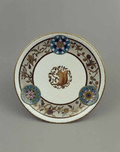 金彩色絵七宝丸紋栗鼠柘榴文皿 イギリス