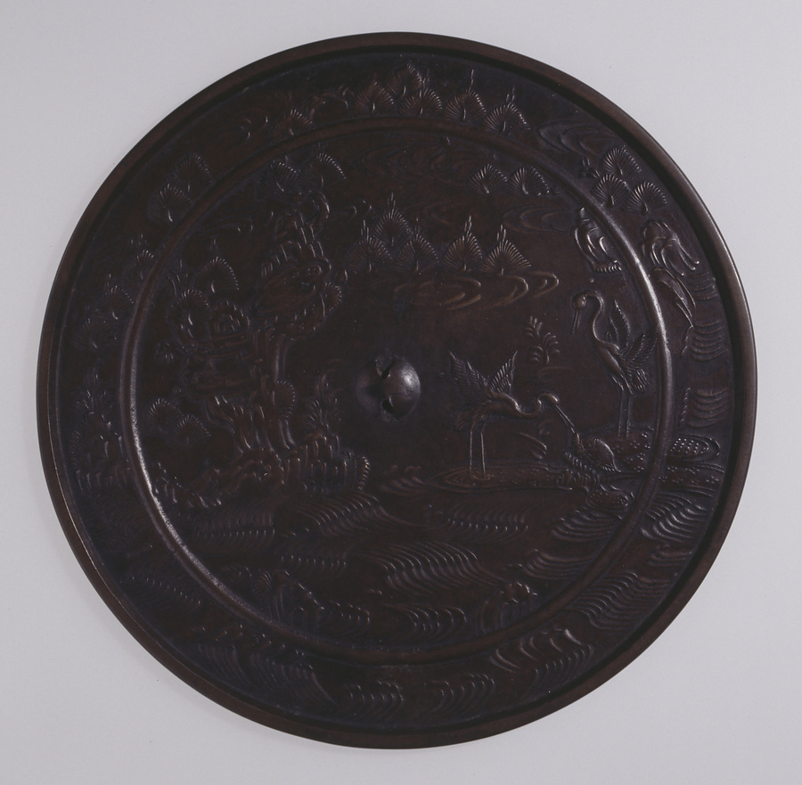 菊花流水双鳥鏡