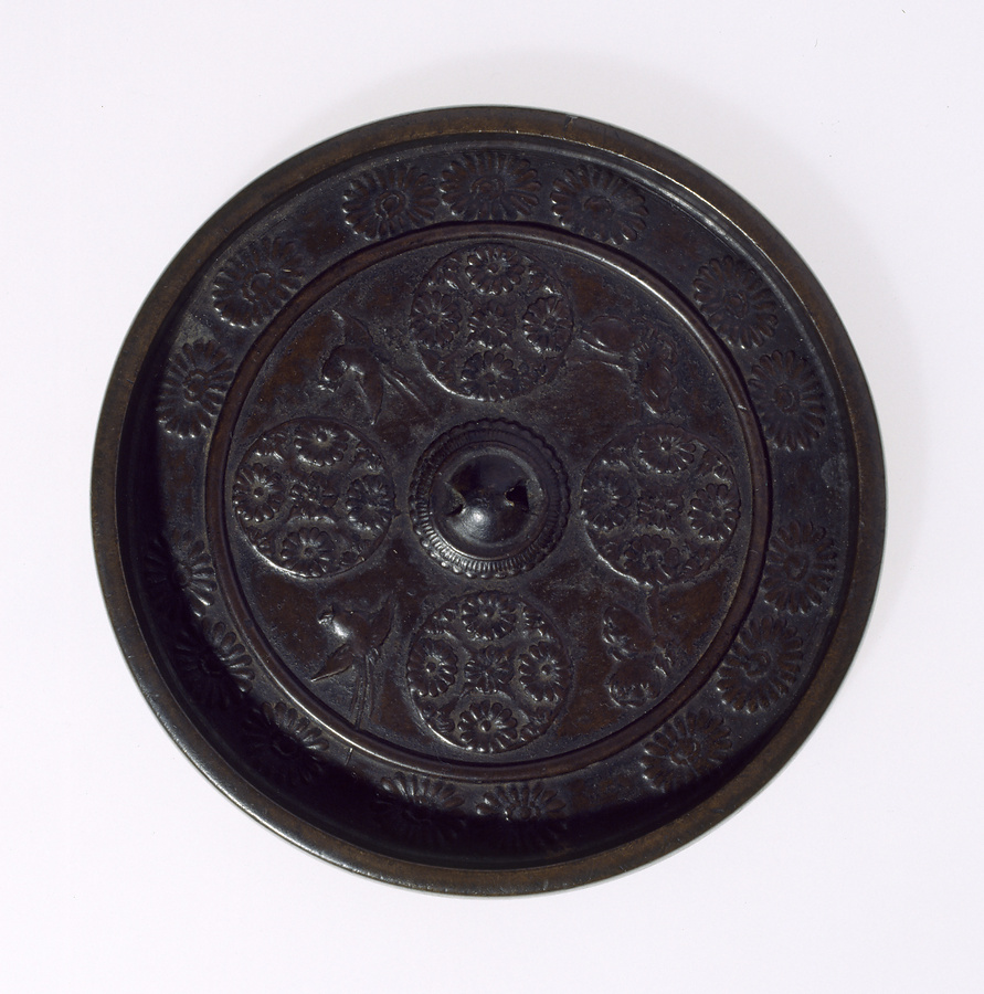 菊花流水双鳥鏡