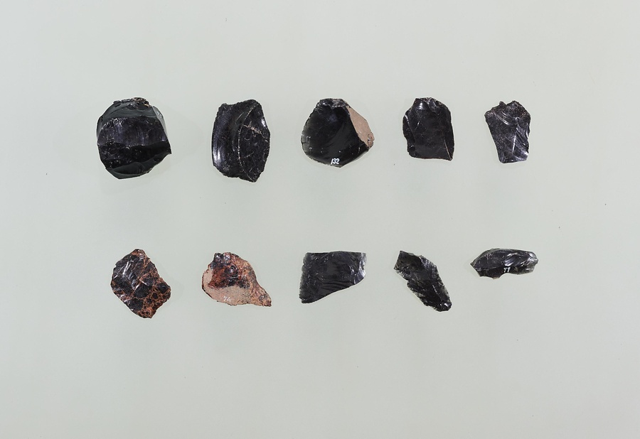 石刃鏃1個(4.4)、削器1個(10.9)、細石刃核2個(5.7-10.8)、細石刃核原形2個(6.1-11.8)、削片2個(7.8-10.9)、両面調整石器5個(6.7-11.9)、石核1個(8.4)、剥片80個(3.6-14.2)、原石1個(6.4)