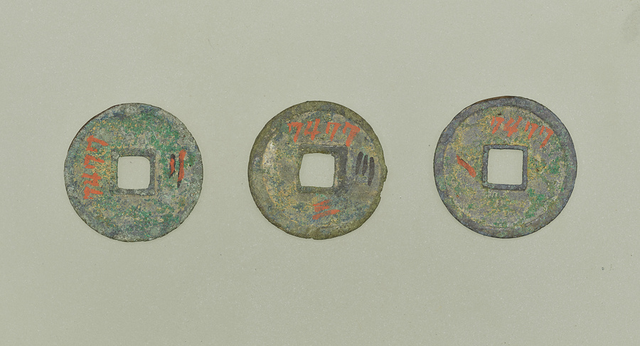 開元通宝、元豊通宝(篆書)、寛永通宝
