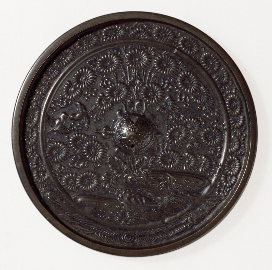 菊花流水双鳥鏡
