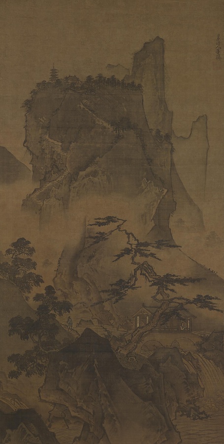 室町時代を代表する禅僧で画家の雪舟(せっしゅう)が描いた作品です。雪舟は京都の相国(しょうこく)寺で修行したのち、30代半ばで山口へ移ります。守護大名、大内氏のサポートを受けて活躍し、応仁元年(1467)48歳のときに、大内氏が派遣した使節団とともに中国・明に渡り、明の様々な絵画様式を学びます。この作品は、雪舟が留学中に明の画風にならって描いたもので、明の王室に献上したものではないかと考えられています。