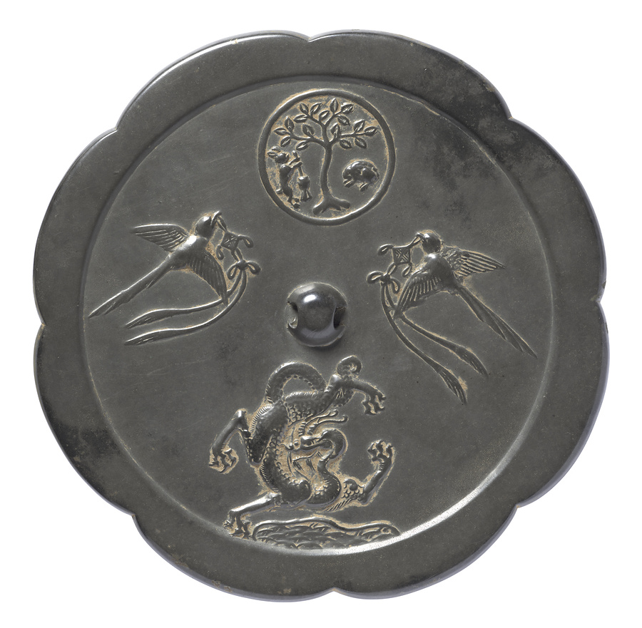 月宮双鵲蛟龍八花鏡