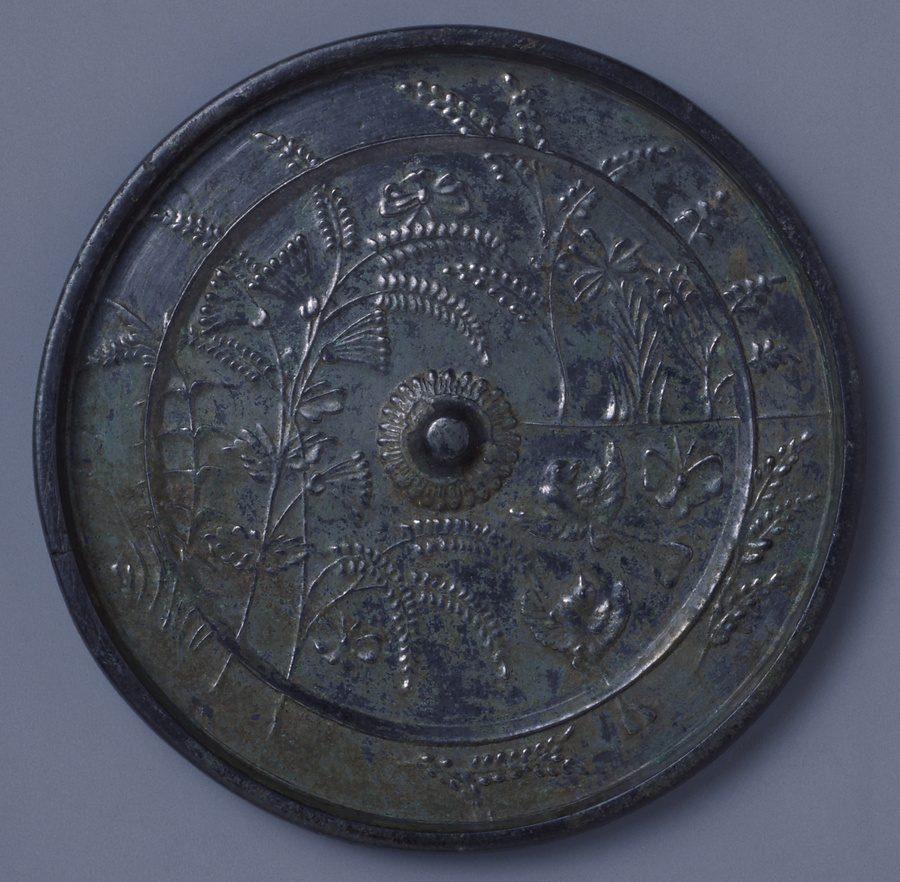 州浜秋草蝶鳥鏡(線刻如意輪観音鏡像)