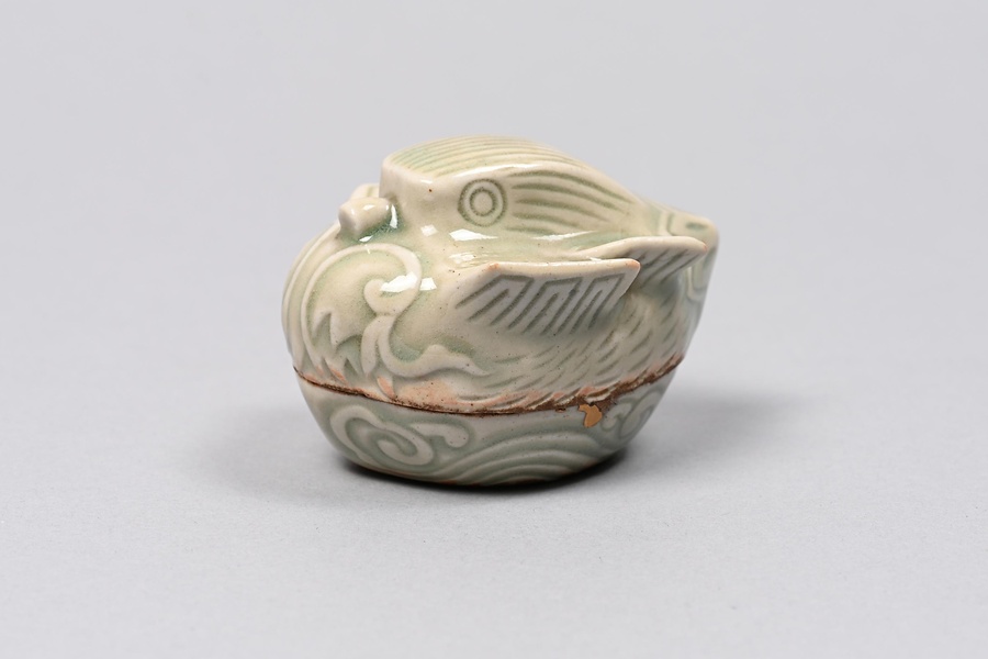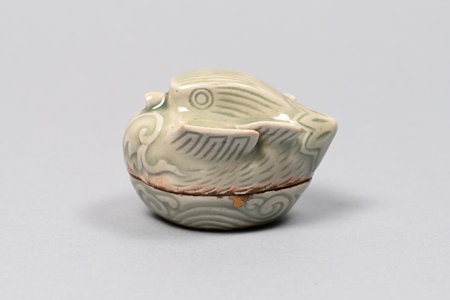 瑞芝焼 青磁鳳凰文獅子鈕香炉
