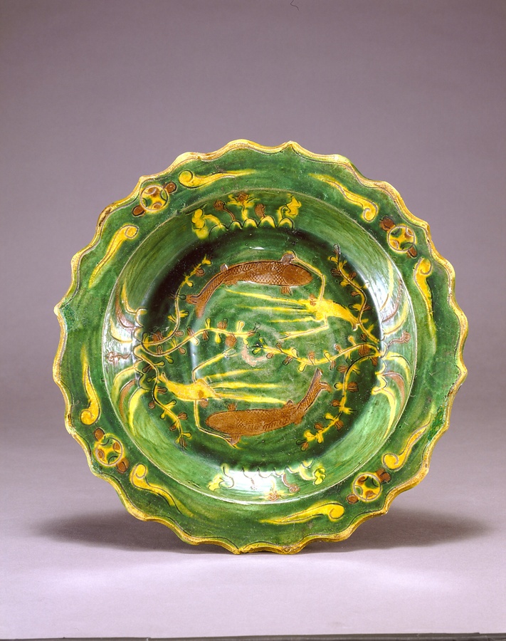 磁製素三彩龍文花瓶 「大明萬暦年製」ノ銘アリ