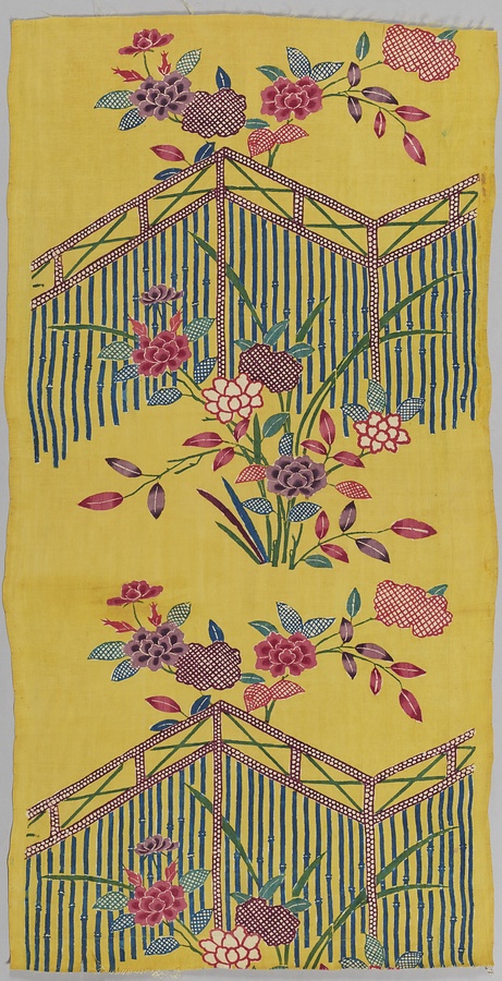 黄地竹垣薔薇文紅型裂
