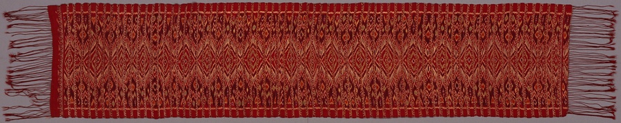 赤地段幾何学文様緯絣肩掛