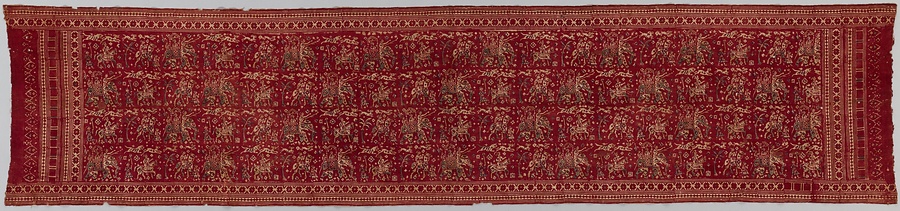 赤地段狩猟舞踏文様更紗装飾布