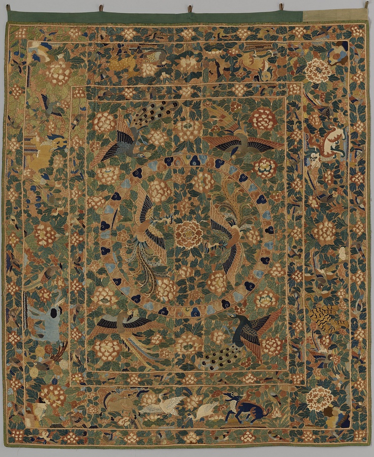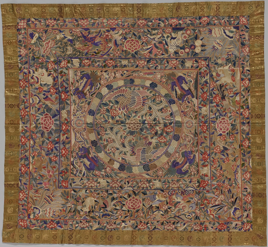 花卉鳥獣刺繍飾布