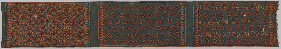 縹地丸文・植物文様更紗装飾布