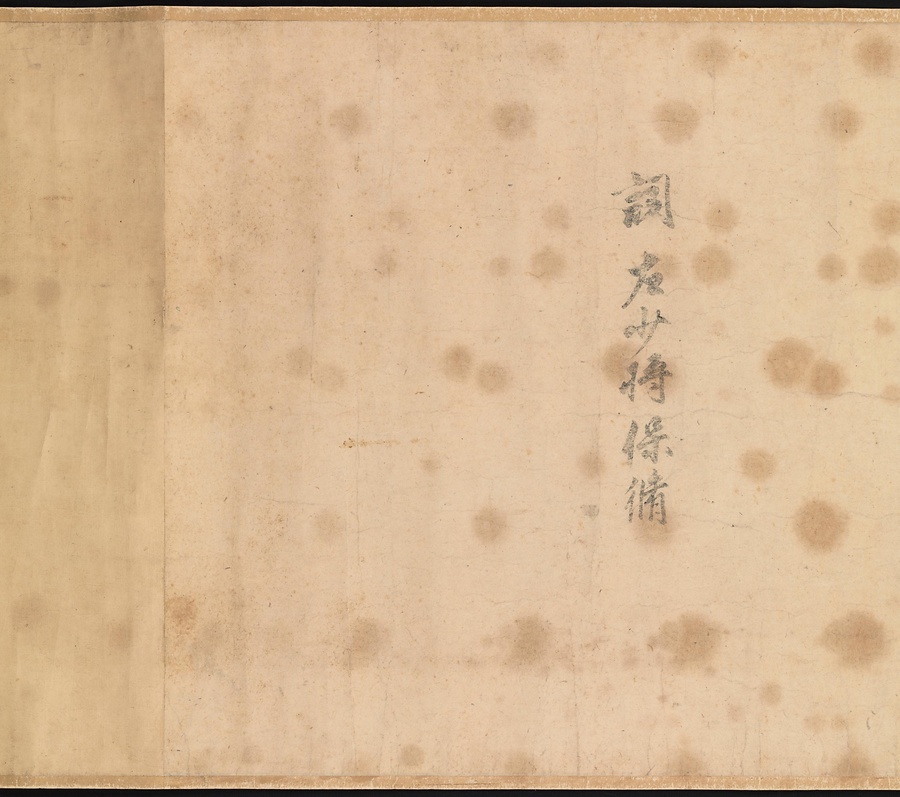 さらにこの絵巻には、貞和三(1347)年の制作、絵は飛騨守惟久(ひだのかみこれひさ)、内容を説明する詞書(ことばがき)は持明院保脩(じみょういんやすのぶ)によるものであるということが記されています。この当時、絵や書を書いた人物がはっきり分かっていることは珍しく、貴重な作品といえます。