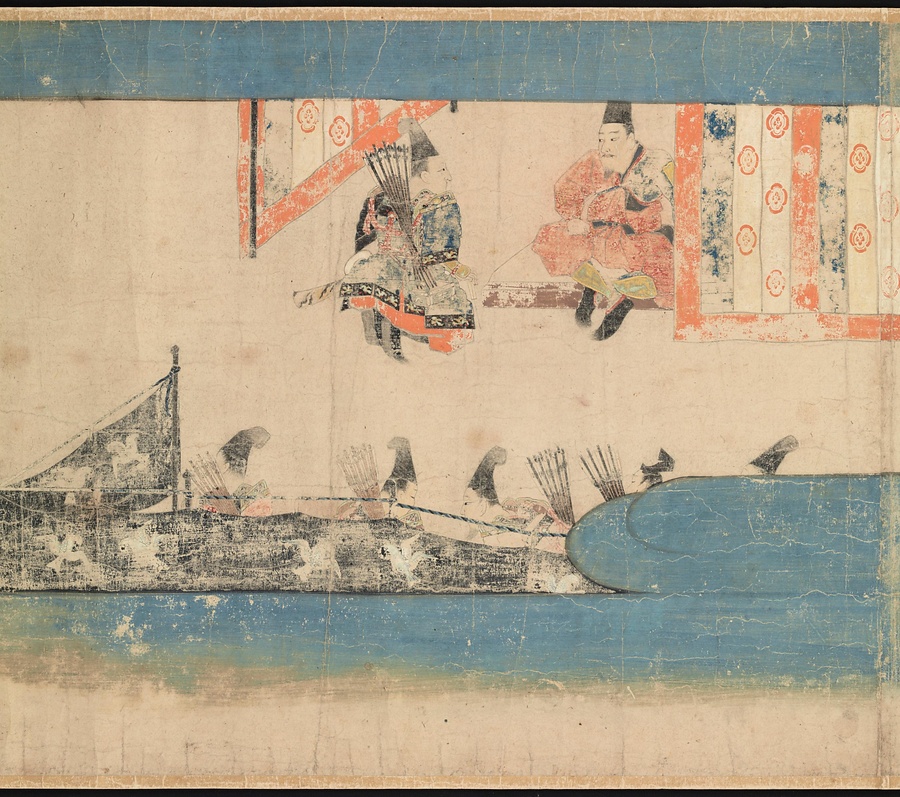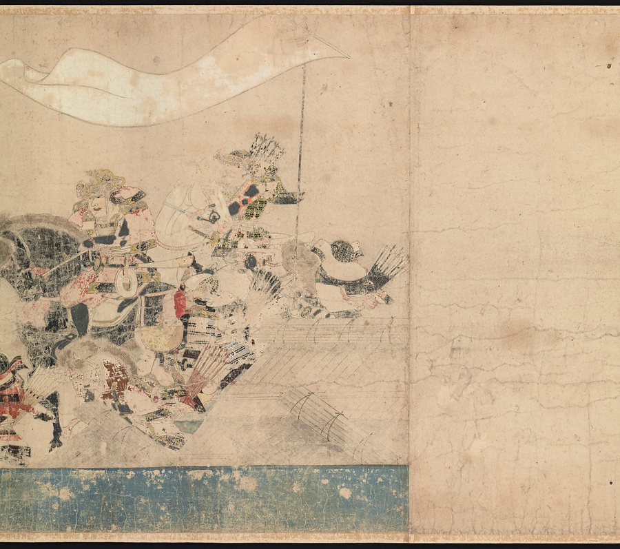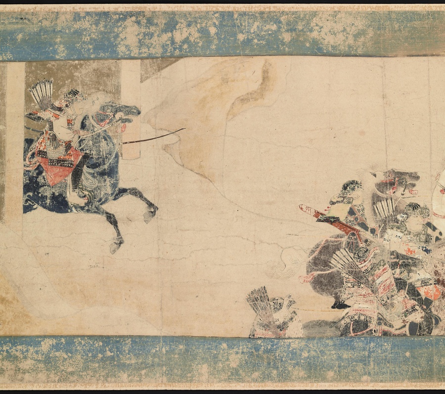 絵巻の筋書きは比叡山の僧、玄慧 (げんえ) が起草したこともわかっています。武士ではない人物の視点から描かれた合戦絵巻であるということを踏まえて見てみるのも、この絵巻の楽しみ方の一つかもしれません。