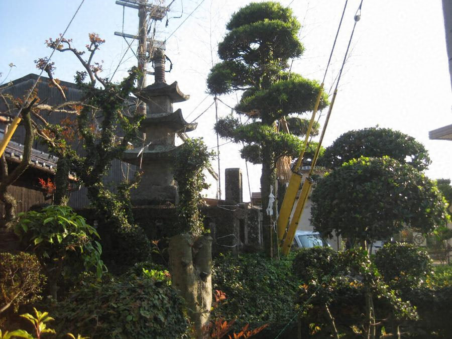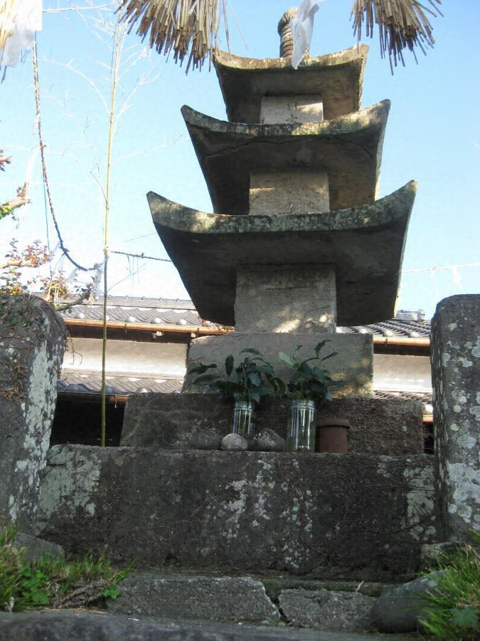 阿蘇溶結凝灰岩製三重層塔で、屋根端部および相輪宝珠先端に一部欠損はあるものの相輪から基壇まで完存する。後述するように全体に劣化、破損が著しく、銘文等の剥落も目立つ。基壇一段目には後世の杯状穴が見られるが、玉垣にあり杯状穴と同じくコンクリートで埋められている。