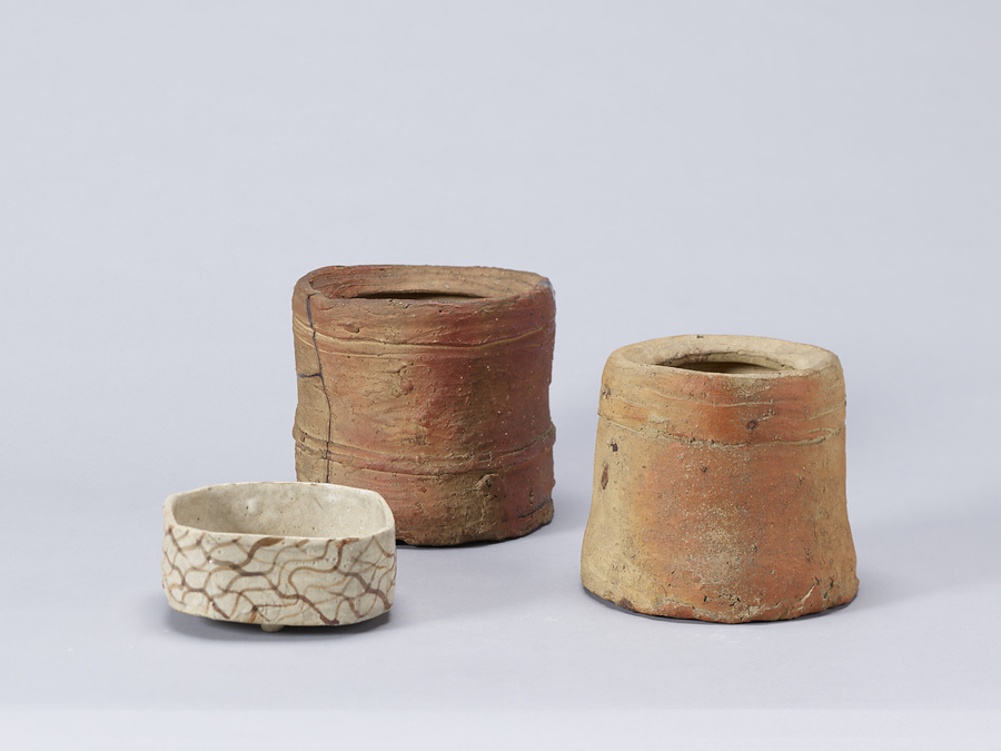 京都の町人で糸割符商を営んでいたとされる有来新兵衛の屋敷跡から出土したとされる茶陶三点である。新兵衛の屋敷は、京都市中京区三条通柳馬場にあったが、江戸時代寛文年間(一六六一~七三)に隣家の杉浦家が買い取っている。その後、享保年間(一七一六~三六)に屋敷普請を行った際に、地下より数多くのやきものが出土したとされる。志野隅切四方鉢一点、信楽水指二点の計三点もこのときに出土したものといわれている。出土したものの多くは、一群として伝来してきたが、近年散逸している。この三点の作品の製作技法や印、刻銘などから、作者を類推できるなど、多くの知見がある。