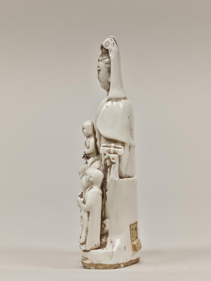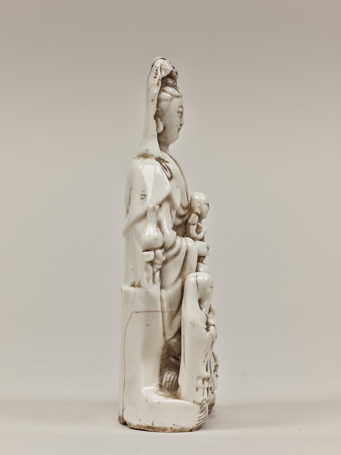 マリア観音は、元来、求児・安産・育児の祈願の対象として中国の福建省などで製作され、九州地方にもたらされた観音像。懐に幼児を抱き岩上に座る姿や白磁の色などから、信徒がこれを純潔の聖母マリアになぞらえて信仰したため、この名がある。