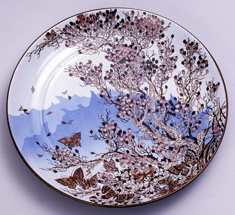 ラスター彩「山ノ実蝶文大皿」