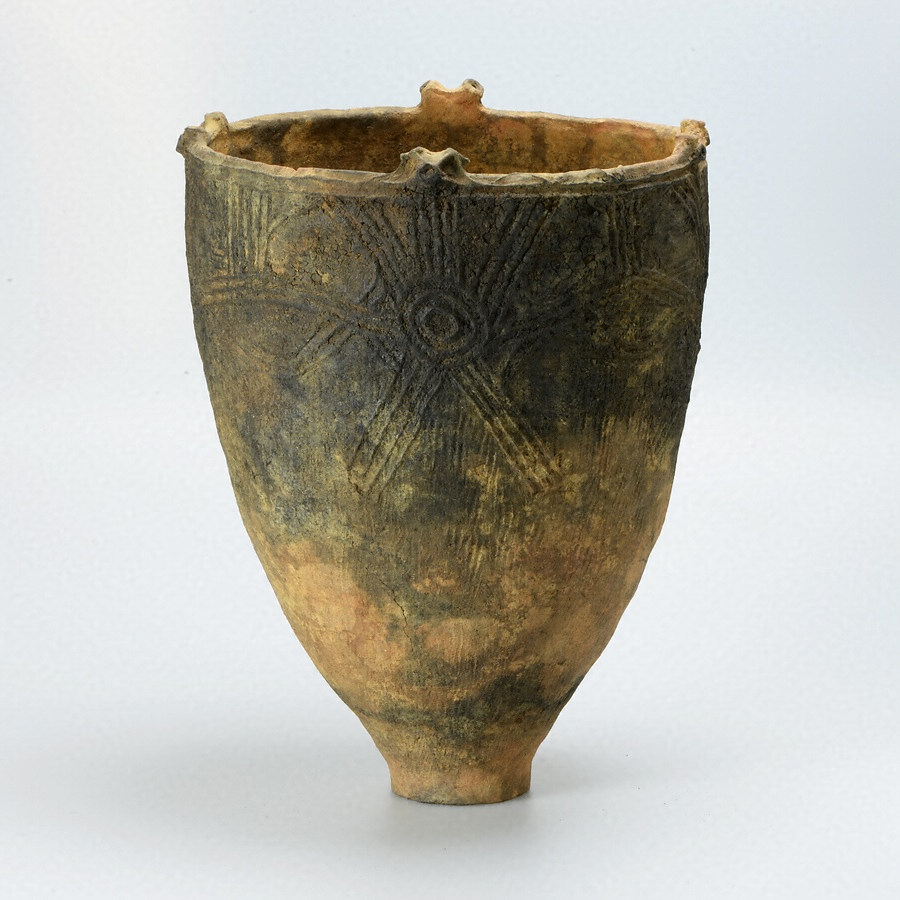 宇津内IIb式土器の中でも新しい段階に属すると考えられる土器の深鉢。土坑内から後北C1式土器と共伴して見つかっており、北海道東部に後北C1式が広まる続縄文時代後期に位置づけられる。器高44.5cmの大型土器でありながら、割れや欠けのない完全な状態を保っている貴重な出土例である。土器の外面上半部は付着した炭化物で覆われており、このため文様が明瞭に観察できない箇所がある。