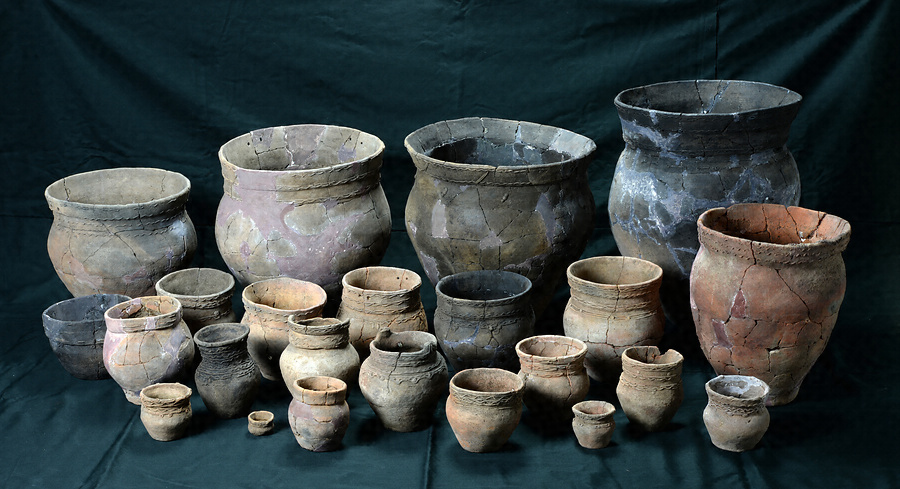 オホーツク文化後期の竪穴住居跡から出土した土器の一括資料。出土場所である15号竪穴は火災で焼失したもので、土器・石器・金属器など多数の遺物が残されていた。土器は完形ないしそれに近い状態に復元可能なものが約40個体出土しており、器高45cmの特大品から器高3cmの極小品まで存在する。住居奥の骨塚周辺では特大・大形品、それ以外の空間では中・小形品がまとまる傾向があり、竪穴住居内の空間利用の差を示すものとしても重要なものである。
