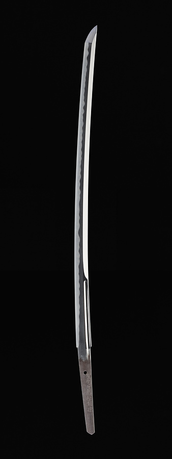 鎬造、庵棟、中鋒やや伸びる。重やや薄い。表裏ともに両チリ腰樋を掻き流す。地鉄は区上やや柾がかりつつ板目約む。刃文は丁子、互の目を交え、長足、葉よく入り、帽子は掃掛け乱れ込む。茎は生で、角棟、先入山形、鑢目は切、目釘孔1つ開く。指表に銘「肥前守藤原鎮忠」と刻す。鎮忠は豊後の高田派の流れを汲む刀工で、肥前に移住したのち、備前一文字派に代表される古刀の丁子刃に範を求めた石堂派に学び、兄の鎮政とともに伊賀名張の藤堂家に呼ばれて作刀を行ったことで知られる。一時絶えていた華やかな一文字派の丁子刃の特徴をよくとらえた鎮忠の代表作と言うべきものであり、江戸時代における刀工の移住と作風展開を知る上で貴重な作品である。