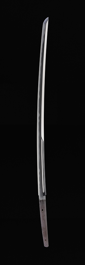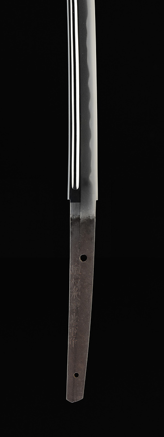 鎬造、庵棟、中鋒、身幅やや広く重は非常に厚い。表裏ともに両チリ丸留の腰樋を彫る。鍛は小板目で刃文は湾れに互の目がまじり、沸よく付く。帽子はやや不鮮明ながら掃掛け焼詰か。茎は生で、角棟、先入山形、鑢目は大筋違。目釘孔2つ開ける。銘は太刀銘で「奥和泉守忠重作」と刻す。忠重(主右衛門、?-1720)は、江戸時代中期に作刀を行った薩摩を代表する刀工。奥忠清の三男で、大坂に出て津田越前守助広(二代)に師事したと伝わる。身幅広く重ねの厚い豪刀が多く、その切れ味は高く評価されていた。元禄2年(1689)に和泉掾、その後和泉守を名乗った。様々な銘のなかで「奥和泉守忠重作」が最も多く、その作行を含めて本品は忠重の典型作と言いうる。