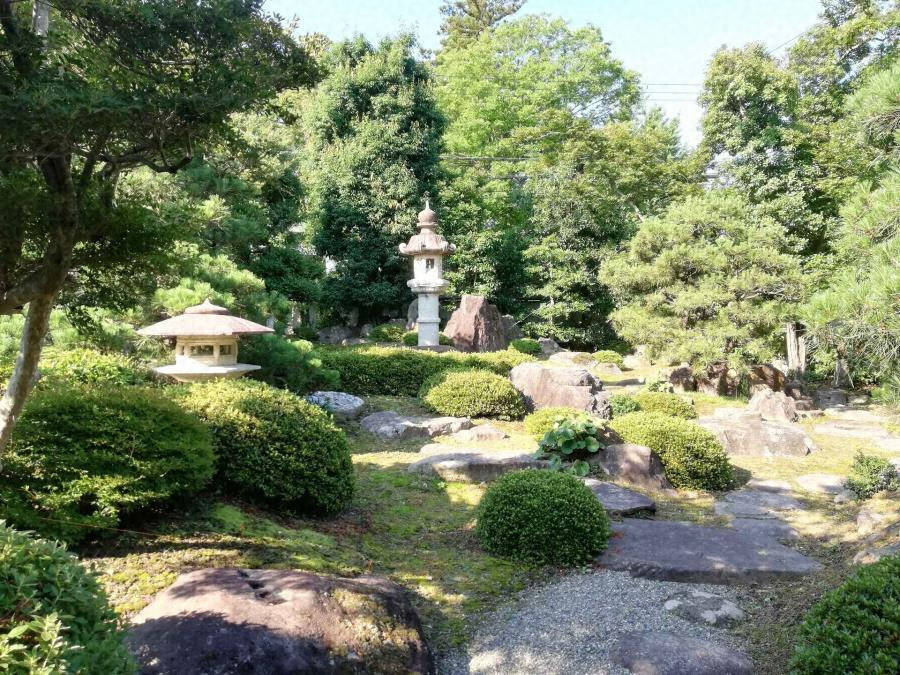 幕末から明治前半に活動した作庭家勝(かつ)元(もと)宗(そう)益(えき)(鈍(どん)穴(けつ))(1810~1889)の作と伝わる近江商人松居(まつい)氏の庭園。主屋(おもや)から見ると、手前のゆるやかな高まりを回り込むように飛石(とびいし)が奥へと続き、その先の低めの築山(つきやま)には大ぶりの石(いし)燈(どう)籠(ろう)や景(けい)石(せき)を配置する。